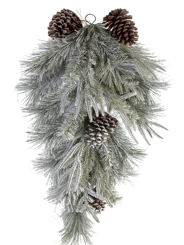 30" FLOCKED PINE MIX TEARDROP